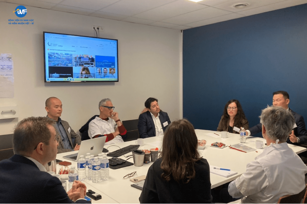 Tiếp đón đoàn công tác là Giáo sư, Bác sĩ Herman Tournaye cùng đội ngũ chuyên gia cấp cao của Brussels IVF. Tại buổi làm việc, GS. Herman Tournaye đã giới thiệu về lịch sử hình thành và phát triển của trung tâm. Được thành lập từ năm 1983, với hơn 40 năm hoạt động, Brussels IVF được biết đến là cái nôi của nhiều nghiên cứu đột phá và đổi mới sáng tạo, đóng góp to lớn cho ngành y học sinh sản thế giới.